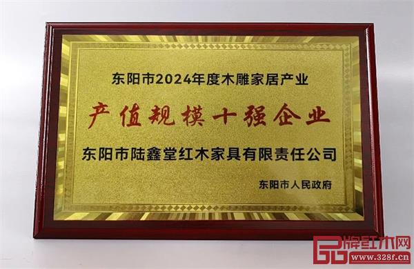 喜迎红红木上榜东阳市木雕家居产业产值规模十强企业