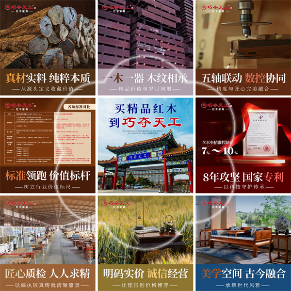 同样,在红木家具领域,材质真假、工艺优劣一直是消费者的最大痛点。巧夺天工红木早在2017年就成为红木家具行业唯一一家“企业标准领跑者”,通过高标准构建了消费者的信任基础。