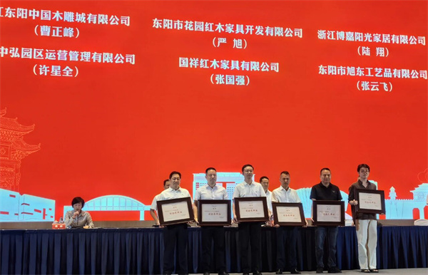 国祥红木董事长张国强(右二)当选“东阳市木雕家居产业协会副会长”