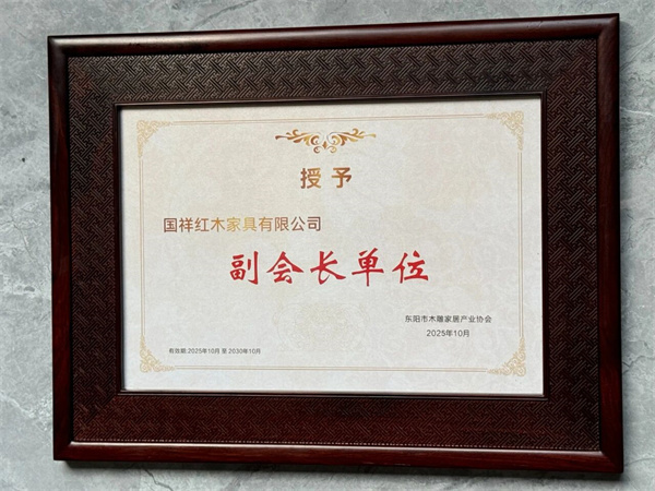 企业长期致力于传承与创新东阳木雕技艺,推动红木家居艺术与现代生活相融合。未来,国祥红木将积极履行副会长单位职责,加强与行业伙伴的协同合作,共同推进工艺升级、品牌建设与市场拓展,为东阳木雕家居产业繁荣注入新动能。