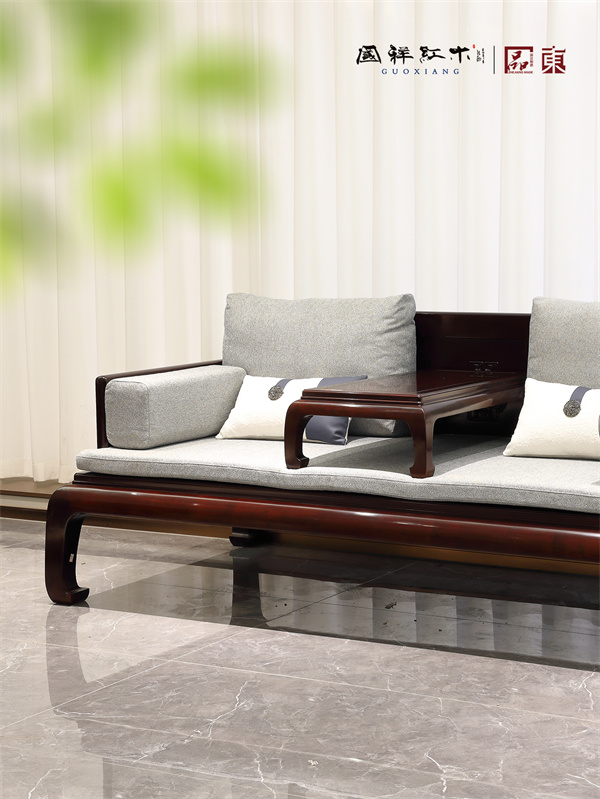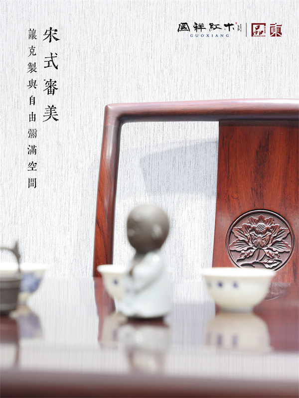 东阳红木品牌国祥红木家具复刻了宋代家具的框架式结构与精细的榫卯工艺,没有繁复雕花,仅以流畅的线条和温润的木纹,便能营造出宁静致远的空间感。