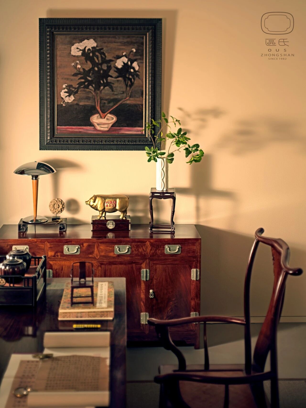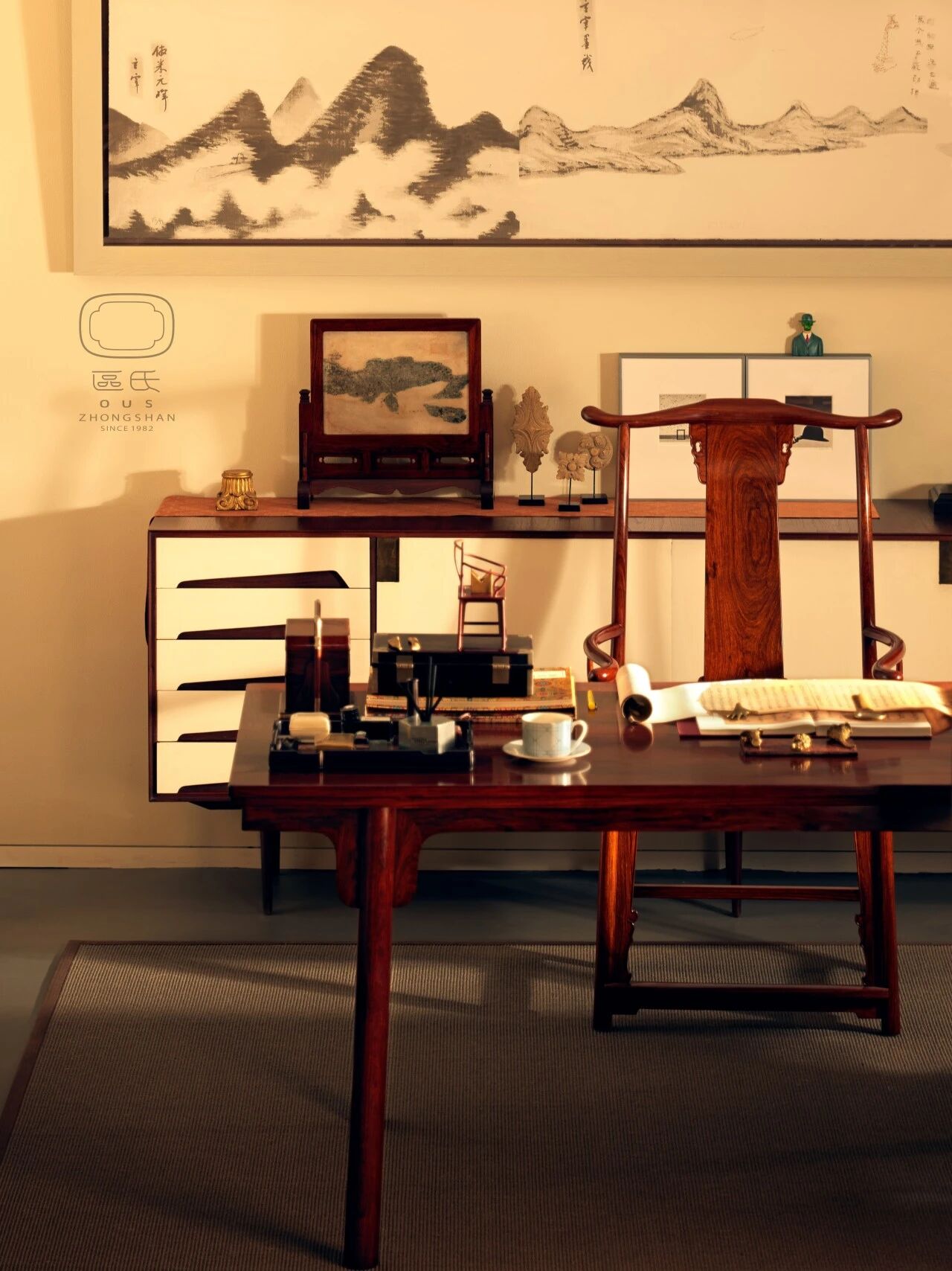 定基调:选择一两件区氏的核心经典款家具(如一张画案、一对官帽椅)作为空间的“定海神针”,确立纯正的中式风骨。