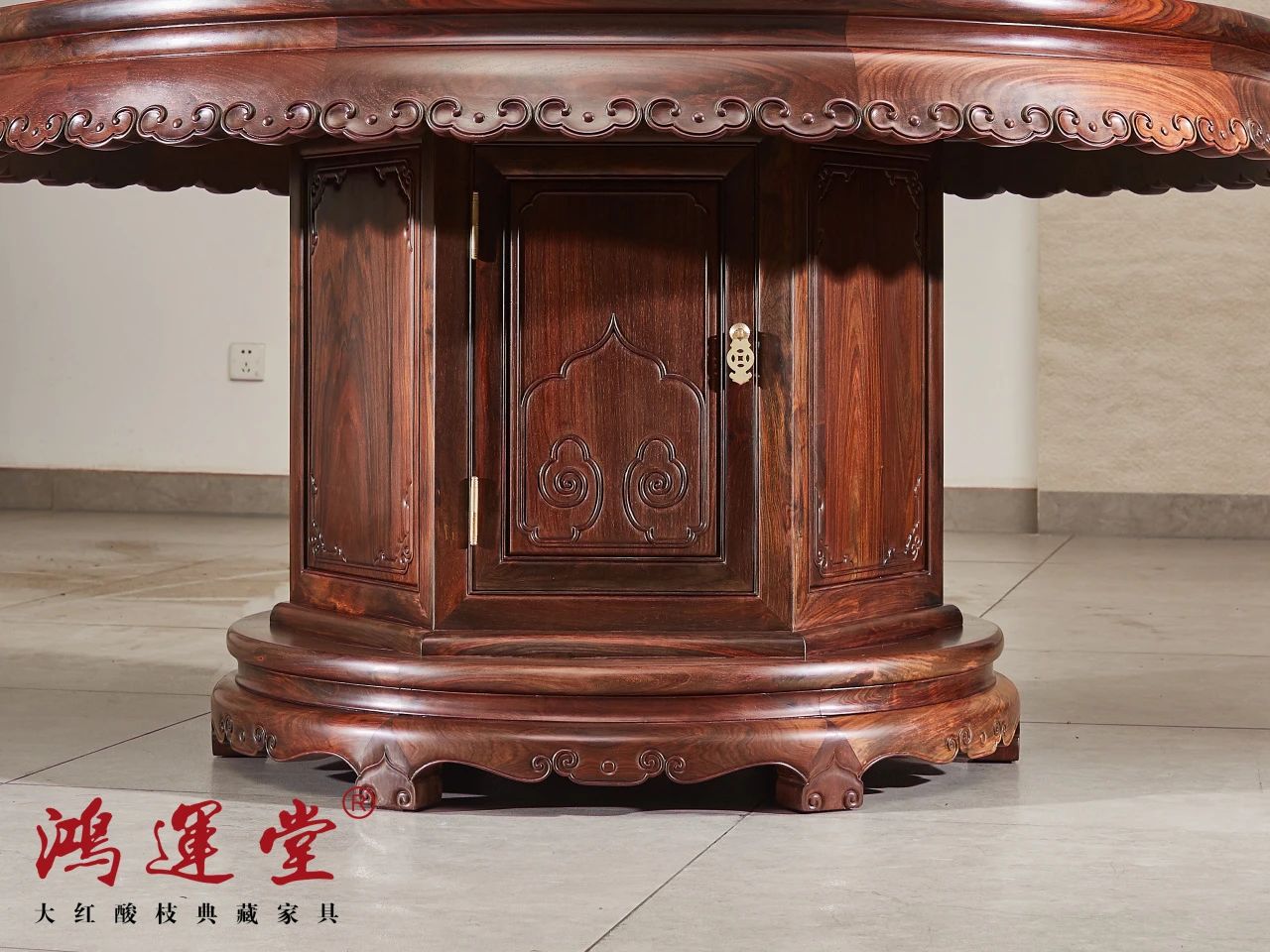 对于追求顶级的藏家而言,“正宗”二字,是选择的第一要义。这不仅关乎木材的纯粹,更在于制作的匠心与品牌的信誉。鸿运堂自1988年创立以来,便树立了一个极为专注且坚定的方向:只做老挝大红酸枝(交趾黄檀)家具。这种“一生只做一件事”的专一,在当今尤为难得。它意味着企业将全部的资源与精力,都投入到对单一顶级木材的理解、甄选和塑造上,其专业性自然更为深厚。