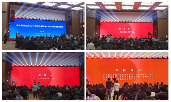 国务院参事室特约研究员、人社部原党组副书记、副部长杨志明,中国轻工业联合会党委副书记、中国家具协会理事长徐祥楠,金华市委副书记、市长张健,省林业局副局长陆献峰,国家林业和草原局科技司原副司长黎云昆,教授级高工、中国林产工业协会首席专家李玉印,中国家具协会副理事长兼秘书长屠祺,中国工艺美术协会驻会副会长王志杰,复星集团党委书记、复星国际副总裁祝文魁, 东阳市领导黄胜可等领导参加。
