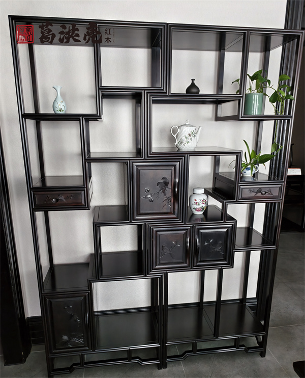 【丝翎檀雕博古多宝格二件套】 则是文雅之士的书房逸趣。它既是收藏心爱之物的雅器,其本身更是丝翎檀雕技艺的展示艺术,让文脉传承在每日的欣赏与使用中悄然延续。