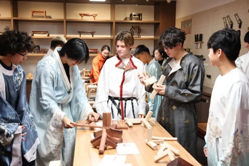 来自美国、澳大利亚、爱尔兰、马来西亚4国共计 94名海外华裔青少年相聚陈列馆体验榫卯工艺