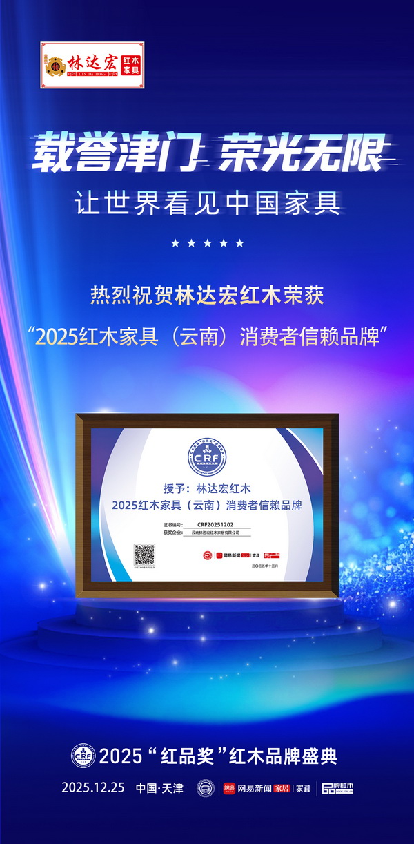 此次荣获“2025特具影响力红木家具区域品牌”,既是行业对林达宏过往成绩的肯定,也是对其继续引领云南红木市场、探索传统产业新生态的激励。