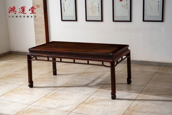 这款《福寿纹餐台》甄选大红酸枝大料制作,桌面平整光滑、纹理连贯,无拼补无瑕疵。