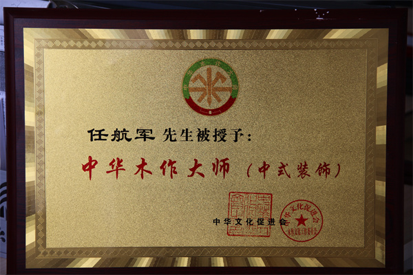 任航军的办公室里,挂着一块牌匾:中华木作大师 。这是对他个人技艺的肯定,也是压在他心头的责任。