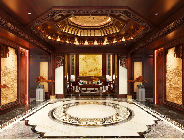 千年传承技艺,是华夏一品雕琢世家风范的魂脉。从严谨烘干到严密榫卯,从严善雕刻到严肃打磨,每一道工序都在追求极致的路上不断精进。东阳木雕的构图饱满、榫卯结构的毫厘不失、纯手工打磨的温润如玉——这些传承千年的技艺,在现代整装空间中获得新生。藻井天花、雕刻背景墙、木作梁架结构……每一处细节都在诉说着东方美学的深邃与厚重。