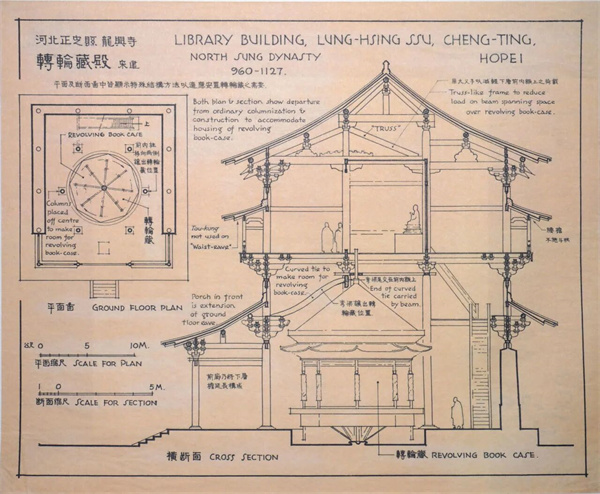梁思成、莫宗江等手绘中国古代建筑图建筑手绘图《河北正定县龙兴寺转轮藏殿》