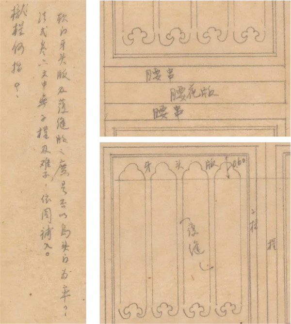 梁思成后来回忆说:“总而言之,我打算做的一项‘翻译’工作——把难懂的古文翻译成语文体,把难懂的词句、不易看清楚的图样‘翻译’成现代通用的‘工程画’。”我们在这批林徽因绘制《<营造法式>注释》手绘图稿,可以清晰地看到营造学社是如何开展这项工作的,因为它们不同于清华大学收藏的营造学社绘制的标准工程图纸,它们是林徽因绘制的“版式稿”和研究草图,它们是正式图纸之前的研究图纸,有着更鲜活的印记,有许多注释和观点在正式图纸上被修订了,但这些图纸上还保留着原始信息。
