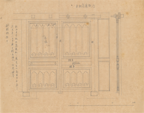 更为重要的是,营造学社历经内忧外患的洗濯,迈出的每一步都以忠贞的家国情怀作为底色。当年日本学术界扬言中华已无唐代建筑,以后世界研究唐代建筑必须去日本的论断,营造学社的工作无疑破除了日本人的结论,这对当时激发民众的民族凝聚力和自尊性都有其贡献。区氏传统木作陈列馆收藏的这些手绘稿是营造学社最重要的遗物之一,它们是历史的重要见证。