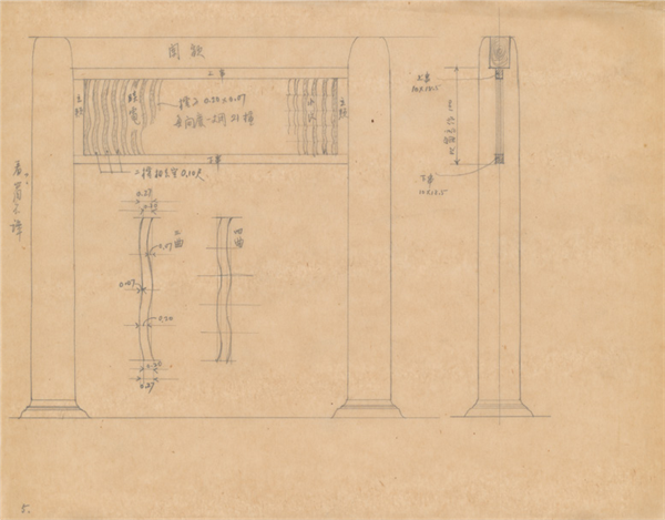 1930年,梁思成等人发起成立营造学社,中国传统家具研究的先驱古斯塔夫·艾克(德)、王世襄、杨耀等人当时都先后参加了营造学社,掀开了现代研究中国传统家具的序幕。区氏参与这次拍卖,首先是看重营造学社和中国明式家具研究的关联意义,尤其是最终拍得的这组稿纸,一共十六张,都是林徽因用铅笔在纸上绘制的小木作测绘手稿,比如乌头门、屏风、棂窗等,这些小木作和家具的关联度很高;其次,这批图纸是王世襄的收藏,其收藏的契机和他的个人经历密切相关。