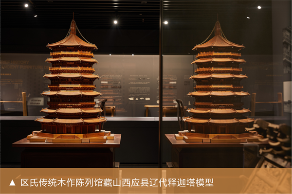 中国的木构建筑跟木构家具有着的天然联系。在陈列馆内,展出有现存世界上最高的古代木构建筑——山西应县木塔的模型,我们还在馆中复原了明代木构建筑——山斋与书房,并在其中陈列明式家具,让大众更好地理解“大木作”与“小木作”之间的关系