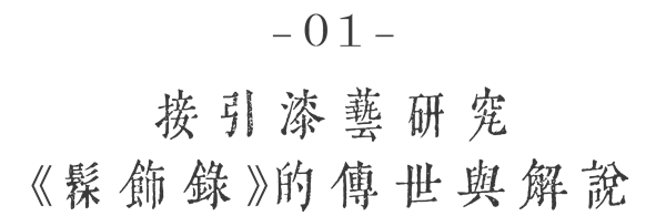 转机出现在1927年。中国营造学社的创始人朱启钤先生,凭借其敏锐的学术眼光与不懈的追寻,终于发现并寻回了这部孤本。他随即主持刊刻,使其得以在国内重新流传。正是朱启钤先生的这一壮举,才让这部中国现存唯一的古代漆工专著免于消亡,为传统漆工艺的存续做出了抢救性与开创性的巨大贡献。事实上,在刊印《髹饰录》之前,朱启钤先生便已着手于漆艺文献的整理,于1925年前后编纂了《漆书》,其远见卓识与守护之心,可见一斑。