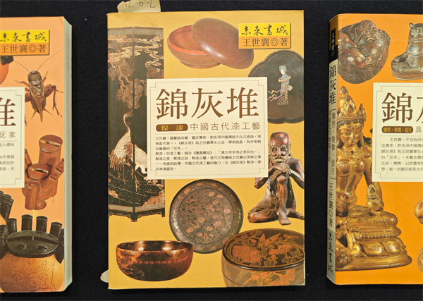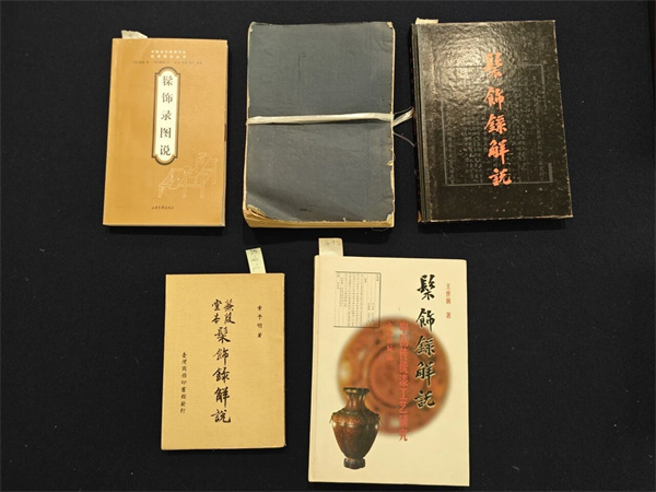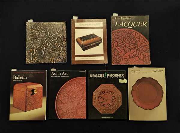 下排从左起:索予明著《髹饰录解说》,王世襄著《髹饰录解说》修订版