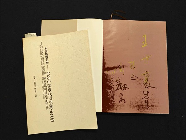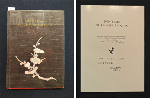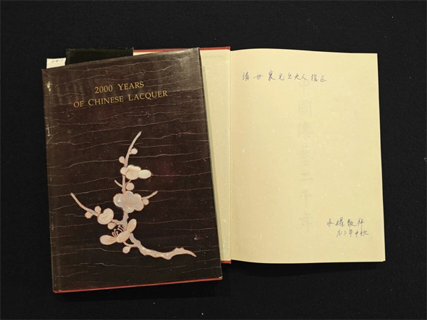 书房藏有两本1993年出版的《中国漆艺二千年》展览图录。一本为胡世昌赠送,另一本写有“承耀 敬拜”,应为展品提供者、攻玉山房主人叶承耀赠送。该图录收录了胡世昌的研究论述与叶承耀所藏的古琴