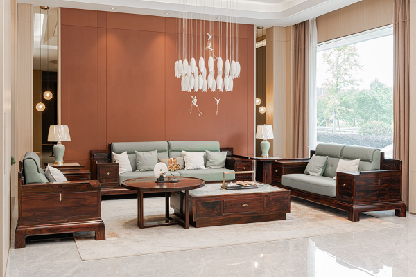 越府红木的阔叶黄檀家具,不仅是实用器具,更是东方美学与当代生活方式的融合载体。越府在风格定位上,聚焦新中式,将阔叶黄檀的沉稳质感与现代审美结合,打造“内敛雅致”的家居气质。