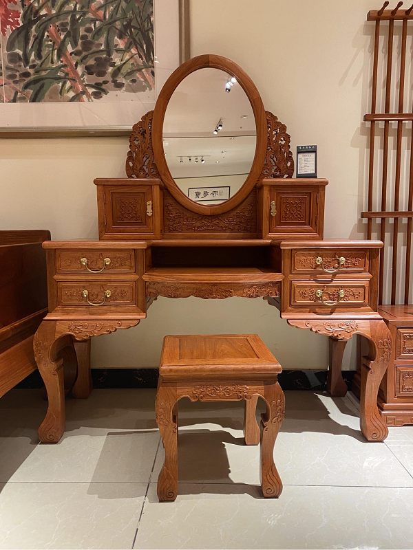 梳妆台系列造型简约,保留缅花天然木香,在梳妆时尽显雅致。