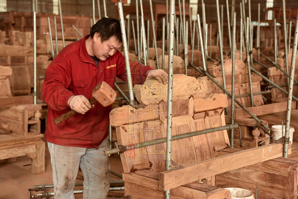 作为江门本地深耕多年的红木企业,盛世周木匠拥有5万平方米的自有工厂,集研发、生产与展示于一体。在完整的自主生产体系下,品牌从原木甄选到成品制作均实现自主把控。
