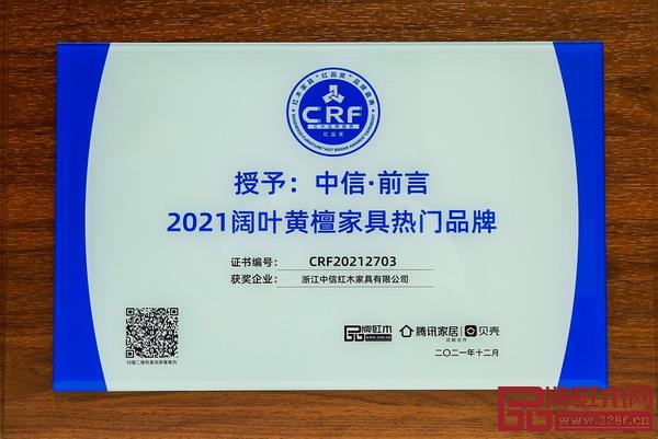 中信·前言荣获“阔叶黄檀家具热门品牌”