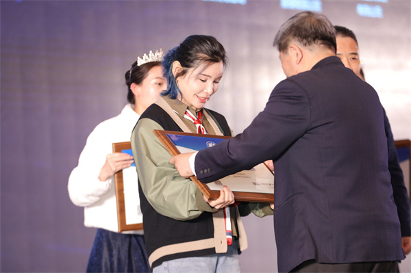 苏阳红红木总经理黄美凤受邀出席盛会,国家文物局原副局长张柏为其颁发“2022红木家具十大影响力品牌”荣誉