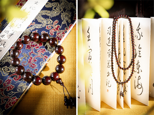 此外,我们还准备了经典的小叶紫檀手串。无论是短串的清雅,还是长串的飘逸,颗颗取自小叶紫檀,质地坚实,油性充足,圆润有光泽。戴于腕间,既是装饰,也是一份内心的安定与陪伴。